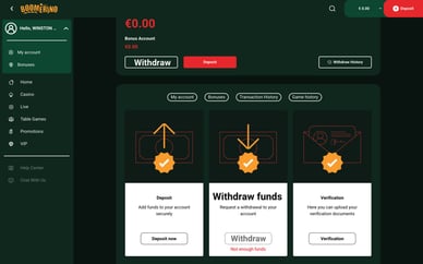 Je kunt geld opnemen van het Boomerino platform met een bankkaart of overschrijving. De opnamesnelheid hangt af van de betaalmethode en de specifieke bank. In de regel is de procedure voltooid in minder dan 1 uur, maar het kan 3 tot 5 bankwerkdagen duren.