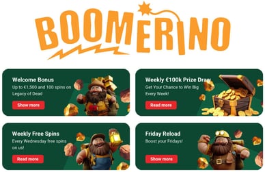 - de beschikbaarheid van aantrekkelijke Boomerino bonussen voor gamers met enige ervaring;