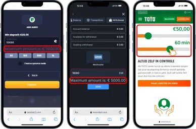 Stortingslimieten, uitbetalingen, inzetten, speeltijd