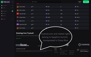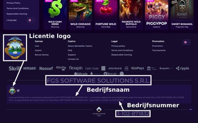 Je kunt controleren of je een licentie hebt via de startpagina van de site. Betrouwbaar online casino Costa Rica plaatst de huidige gegevens in de voettekst van de pagina. Het ondernemingsnummer en de bedrijfsnaam van de oprichter van het casino worden ook onderaan de pagina vermeld.