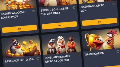 Het is mogelijk om vanaf de eerste dag winst te maken. Registratie brengt tot 1,6 euro op de speelrekening. Als je je verder vertrouwd maakt met de aanbiedingen, kun je cashback, een app-installatie bonus en loyaliteit beloningen krijgen. De hoge waardering van Fins online casino op internationale forums bevestigt dat het bedrijf te vertrouwen is.