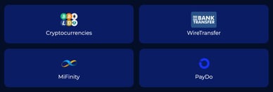 Betalingssystemen | VISA, Mastercard, Skrill, Neteller, Ezeewallet, Neosurf, Astropay, Rlexepin, CashtoCode, Interac, Jetonbank, MB, EcoPayz, Bank Transfer, Paysafecard, Ripple, Bitcoin, Ethereum, Litecoin, Tether, Noda Identity Verification |