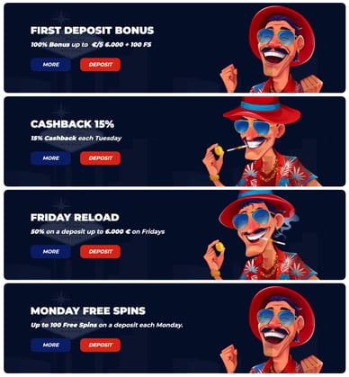 Bonus | Welkomstbonus 100% op bedragen van 30 tot 6000 euro + 100 FS, cashback op dinsdag 15% op bedragen vanaf 20 euro, herlaadbonus op vrijdag 50% tot 6000 euro. |