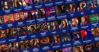 Assortiment spellen | 7.000+: slots, blackjack, roulette, baccarat, craps, poker, bingo, krasloten, keno, spelshows |