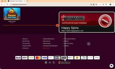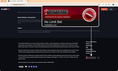 - Klik op het Kahnawake casino online licentie icoon. Ga naar de officiële website van de Kahnawake toezichthouder om te zoeken. Gebruik de bedrijfsnaam of het vergunningsnummer van de eigenaar.