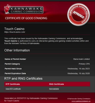 - Verkrijgen van een licentie. Als de resultaten van de audit aan de eisen voldoen, krijgt de aanbieder de status van Kahnawake casino.