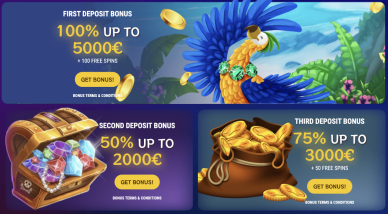 De introductie tot bonus beloningen voor Nieuwkomer begint met de welkomstbonus. De hoogte van de beloning is afhankelijk van de storting en met deze voorwaarde moet rekening worden gehouden. Aangezien er extra betalingen beschikbaar zijn voor de eerste drie stortingen, is het totale bonus bedrag maximaal €10.000. Kakadu casino voegt ook gratis spins toe aan de uitbetalingen voor bepaalde spellen.