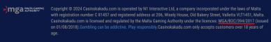 Het is nu onmogelijk om op de internationale markt te werken zonder een geldige vergunning (d.w.z. de resultaten van de inspectie), dus kreeg het casino deze vergunning. Volgens de informatie op de website werd de beslissing over de betrouwbaarheid van Kakadu casino in 2023 genomen. De huidige exploitatievergunning werd afgegeven door de MGA. Bij het controleren van de kwaliteit van de dienstverlening worden de volgende criteria gebruikt om de conformiteit van de diensten vast te stellen: