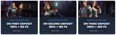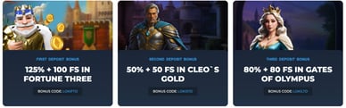Na registratie en een storting krijgen spelers een welkomstbonus. Bij Loki Casino krijgen nieuwkomers 255 % tot € 6.000 en 230 FS voor drie stortingen: