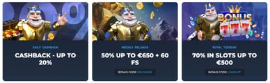 Voor spelers is er een wekelijkse bonus van 50% tot 650 euro + 60 FS. Deze kan elke week geactiveerd worden door €30 te storten met de promo code RELOAD50. Je kunt geld inzetten bij LokiCasino met een inzet van 35x en de ontvangen freespins met een inzet van 25x.