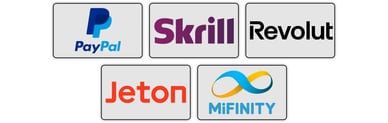 Moderne betaalmethoden - elektronische portemonnees PayPal, Skrill, Mifinity, Jeton, Revolut - zijn aantrekkelijke voordelen. De transactiesnelheid bedraagt niet meer dan 24 uur. Bovendien hoeven gebruikers geen bankgegevens op te geven in het e wallet casino. De maximale betalingslimiet is verhoogd tot €5.000.