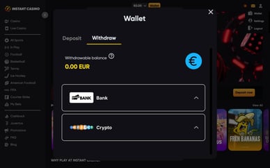 Instantcasino | Visa, Mastercard, cryptocurrency | €25 | €2.000 | €40 |