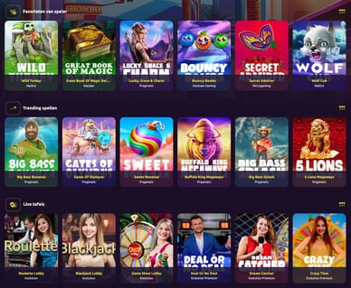 Spellen | Slots, tafelspellen, live casino, sportweddenschappen |