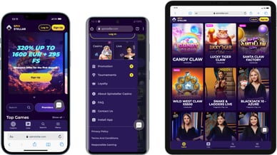 Voor snelle toegang tot de site kun je een speciaal ontworpen online casino app gebruiken. Om deze te installeren, moet je het portaal openen op je apparaat en dan de downloadknop vinden in het extra menu. Je hoeft geen bestanden te downloaden als je de mobiele versie van de Spinstellar website gebruikt.