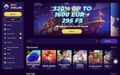 Een beschrijving van bonusaanbiedingen, een lijst met winnaars van de afgelopen dagen en een scala aan entertainment - dit alles begroet de nieuwkomer bij de eerste kennismaking met Spinstellar. Toch is een informatieve homepage niet genoeg om spelers in 2025 aan te trekken. Voor gebruikers die geïnteresseerd zijn in de diensten van het bedrijf, blijft de Spinstellar review het nuttigst.