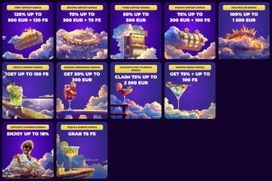 Het bonusprogramma van het online casino biedt geen beloningen zonder storting. De lijst met beschikbare beloningen is echter opgesteld met de verwachtingen van de klanten in het achterhoofd.