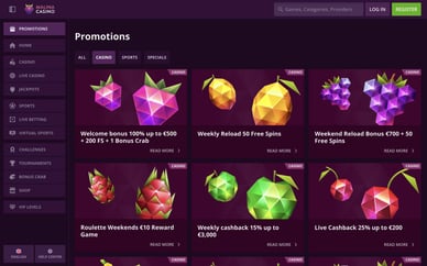 - verschillende loterijen, toernooien en andere waardevolle casino aanbiedingen.