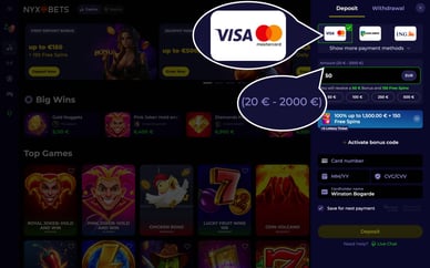 De meeste Nederlandse en buitenlandse casino's accepteren betalingen via Visa. Hiervoor moet je het kaartnummer, de vervaldatum en de code op de achterkant opgeven.