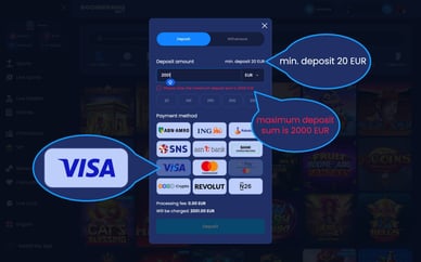 Het minimum- en maximumbedrag voor transacties hangt af van de aanbieder. Hoewel Visa klanten niet beperkt in transfers, stellen casino's andere regels op. Meestal is de minimale storting €20 en heb je €25 nodig om geld op te nemen.