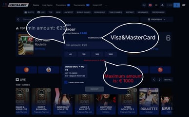 Legale Nederlandse gok platform met populaire en zeldzame slots, evenals alle gangbare spellen met live dealers in realtime. Het aanbod van de exploitant omvat ook talrijke spelshows en sportweddenschappen. Actieve gamers kunnen deelnemen aan spannende promoties en bonussen. Spelers van dit Visa online casino kunnen hun persoonlijke portemonnee aanvullen en geld opnemen met behulp van de meest gangbare betaalmethoden in Nederland.