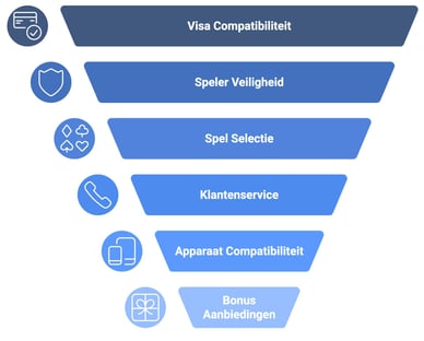 Om te beoordelen of Visa casino's aan de eisen van klanten voldoen, is grondig onderzoek nodig. Het team van experts bestudeert de volgende parameters van de aanbieders: