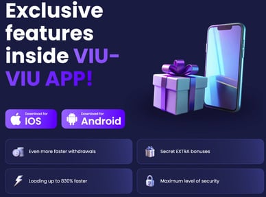 Klanten hebben niet veel tijd nodig om een moderne applicatie te installeren. ViuViu biedt het downloaden van installatiebestanden van de mobiele versie. De informatie staat in een extra menu. Om het te openen, moet je op de drie verticale balken in de linkerbovenhoek tikken.