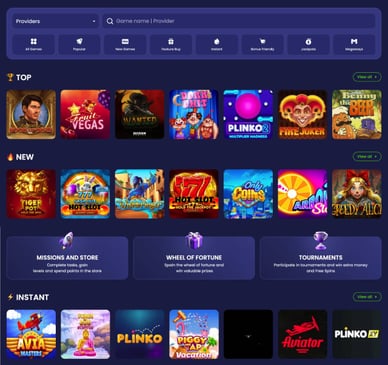 Viu Viu casino biedt meer dan 3.000 entertainment opties. De site biedt producten van BetSoft, Playson, NetEnt, Fugaso en vele anderen. Je kunt de aanbieder van je voorkeur kiezen met behulp van het filtersysteem. Om vertrouwd te raken met de verscheidenheid aan gokken met echt geld, kun je bovendien de categorieën bekijken: