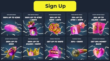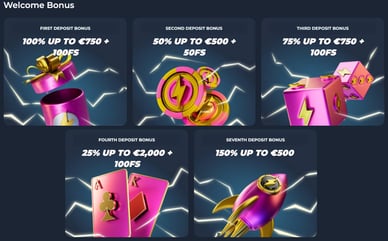 Nadat ze hun account hebben aangevuld met minimaal 20 euro, ontvangen ze hun bonus gelden, die 40 keer moeten worden ingezet voordat ze kunnen worden opgenomen. Bovendien ontvangen spelers 100 gratis spins die ze kunnen besteden aan verschillende slots in de sectie "Bonus games".