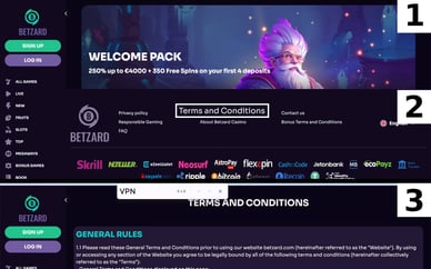 Hiervoor moet je de VPN van een bepaalde regio starten en controleren of je via deze VPN toegang hebt tot het casino. Daarnaast is het erg belangrijk om te controleren of jouw land niet op de lijst van verboden regio's staat, die meestal wordt gepubliceerd in de algemene voorwaarden van het casino dat via VPN werkt.