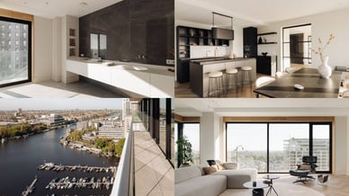Zijn appartement bevindt zich op de 18e verdieping, die een prachtig uitzicht biedt over de Amstel en het centrum van Amsterdama.