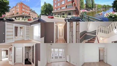 Vanuit de ramen van het appartement van de tv-presentator is er uitzicht op het Zuider - Amstelkanaal. Het Vondelpark en de chique Beethovenstraat zijn vlakbij.