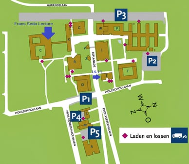 Bekijk de plattegrond van Tilburg University, waarop de belangrijkste faciliteiten duidelijk zijn aangegeven: het hoofdgebouw en de groene campus. Bekijk ook de plattegrond van de verdieping. De hoofdingang van de universiteit bevindt zich aan de Warandelaan 2, 5037 AB Tilburg.