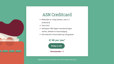 Met de ASN creditcard kunnen aankopen in binnen- en buitenland en online worden betaald. Er is een bestedingslimiet van €1.000 tot €5.000 beschikbaar. ICS stemt dit af op je financiële situatie en kan een lagere limiet toekennen als je inkomen ontoereikend is. Elke maand komt er een online rekeningoverzicht in de app. Je kunt je ASN creditcard alleen koppelen aan je huidige ASN bankrekening.