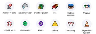 Waze-pictogrammen helpen u de situatie in te schatten.