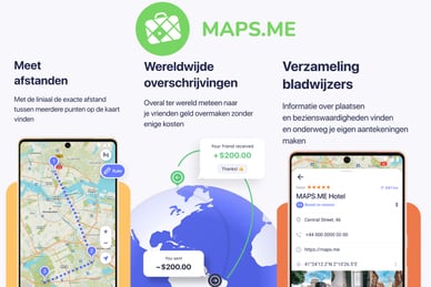 Je hoort vaak de vraag: “Hoe werkt maps.me?”. Je kunt kaarten van landen en steden, maar ook van afzonderlijke regio's downloaden, routes voor voetgangers, auto's en fietsers uitstippelen en objecten (hotels, winkels) zoeken op naam, categorie of adres.