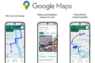 Google Maps helpt u routes te plannen voor wandelen, autorijden of fietsen. U kunt deze app ook gebruiken om met het openbaar vervoer door de stad te navigeren.