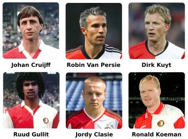 Beste spelers | Johan Cruijff, Robin van Persie, Ruud Gullit, Dirk Kuyt, Ronald Koeman |