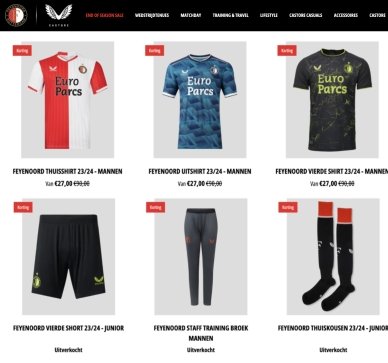 Feyenoord FC heeft een eigen online winkel, waar vaak uitverkoop is. Je vindt er producten die met het team te maken hebben, vooral uitrusting: