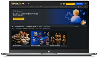 - Bet and You bonus cashback 20%. Typer, który wpłaci do witryny depozyt za pomocą Skrill lub Neteller otrzyma cashback 20% do 200 zł. Minimalny depozyt: 43 zł. Wymagany obrót: 10x na kuponie akumulowanym zawierającym co najmniej 4 zdarzenia każde z kursem 1.4 lub więcej.