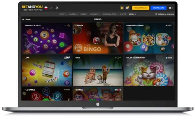 W sekcji Bingo klient kasyno BetandYou znajdzie różne odmiany tej gry wyprodukowane przez najlepszych dostawców gier kasynowych, takich jak np. G.Bingo (26+ tytułów, m.in. 7 11 21), Pragmatic Play (Animingo), Eurasian Gaming (Crypto Mania Bingo, Koi Bingo), Leap (Next 6), Atmosfera (Bingo Live). W bingo można grać tylko na prawdziwe pieniądze.
