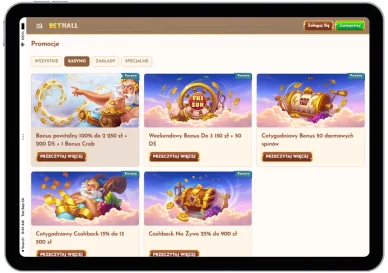 Najważniejsze promocje kasynowe dostępne w BetHall Casino to: