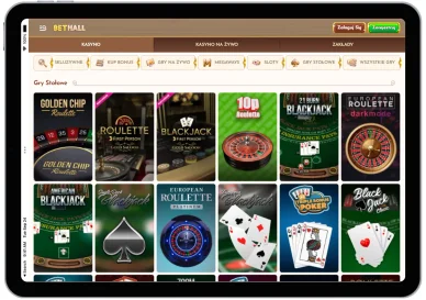 W ofercie Bet Hall Casino nie brakuje unikalnych wersji pokera, blackjacka czy ruletki. Oprócz tego w propozycjach znajdują się klasyczne karcianki i gry, w których oddaje się rzuty kośćmi. Różnorodność ta sprawia, że każdy użytkownik próbujący swoich sił w grach stołowych bez problemu znajdzie opcje wpisujące się w jego konkretne upodobania.