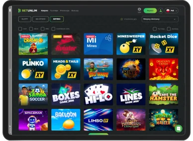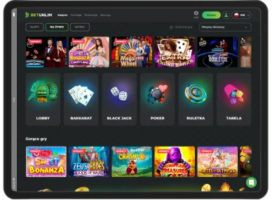 Platforma hazardowa może pochwalić się szerokim wyborem gier kasynowych — ponad 10 000 tytułów od renomowanych dostawców. Polscy gracze mogą cieszyć się bezpieczną i uczciwą rozgrywką w Betunlim Casino, w towarzystwie najnowszych i najbardziej ekscytujących gier online. Ponadto kasyno stale poszerza swoją ofertę o nowe tytuły. Wszystkie gry są dostępne na urządzeniach mobilnych, dzięki czemu możemy grać w nie w dowolnym miejscu i o każdej porze.