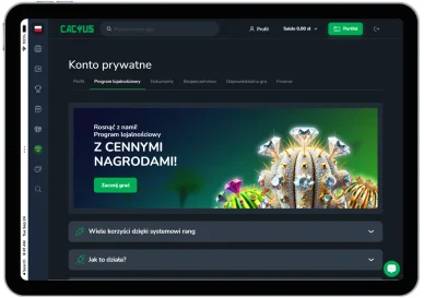 Cactus Casino online stworzyło jeden z najlepszych programów lojalnościowych, do którego może dołączyć każdy zarejestrowany polski gracz. Świeżo upieczony klient zostaje automatycznie przypisany do najniższego poziomu 1. Aby awansować na kolejny poziom w kasynowym programie lojalnościowym, należy zebrać określoną liczbę punktów. Punkty przyznaje się za każdy postawiony zakład w automatach online (25 zł = 1 pkt).