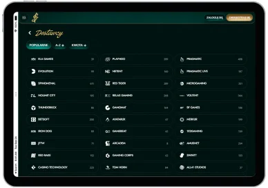 🎲 Dostawcy Oprogramowania | 89+1X2 Gaming, 30Aks, All41 Studios, Amusnet, Apollo Games, Apparat, Atmosfera, Avatarux, Aviatrix, Bally Wulff, Belatra, Betgamestv, Betsoft, BF Games, BGaming, Big Time Gaming, Bombay Live, Booming Games, Caleta, Casino Technology, Claw, Creedroomz Live, Ela Games, Elk, Endorphina… |