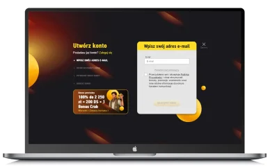 - Kliknięcie przycisku Załóż konto, który można znaleźć w prawym górnym rogu strony głównej kasyna online. Po kliknięciu tego przycisku otworzy się okienko rejestracji.
