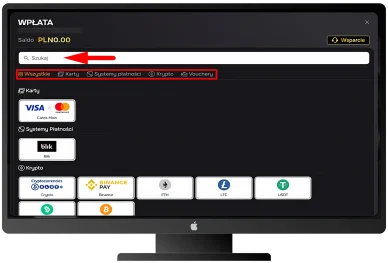- Po zalogowaniu się do witryny musimy kliknąć pomarańczowy guzik Wpłata (umieszczono go w prawym górnym rogu).