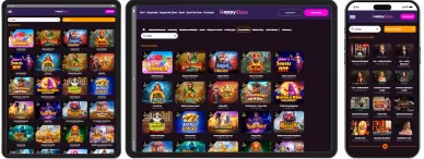 Strona hazardowa HappySlots została zaprojektowana w technologii RWD, co w praktyce oznacza, że można ją uruchomić z poziomu przeglądarki dowolnego urządzenia — laptopa, PC, telefonu i tabletu (dotyczy to zarówno nowszych, jak i starszych modeli) z każdym systemem operacyjnym. Działa ona bez zarzutu na ekranach komputerów, smartfonów i tabletów. Przy tym klient kasyna online nie musi pobierać dodatkowego oprogramowania na swoje urządzenie.