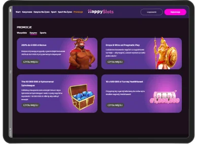 HappySlots Kasyno Online przygotowało obszerny program promocyjny, w którym nie brakuje bonusów dla fanów gier kasynowych i typerów, m.in. bonus powitalny i ulepszony BetBuilder. Oprócz tego klienci klubu hazardowego mogą uczestniczyć w różnorodnych turniejach, w których można wygrać wysokie nagrody pieniężne.
