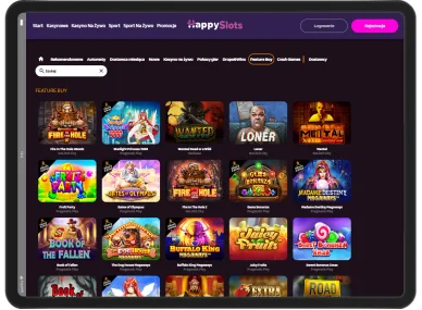 Polskie HappySlots kasyno online oferuje ponad 600 tytułów z funkcją Feature Buy zaprojektowanych przez różnych dostawców, m.in. No Limit City (Loner), Pragmatic Play (Fruit Party), Hacksaw Gaming (Chaos Crew). W kasynie internetowym gracz może grać w dostępne tytuły wyłącznie na prawdziwe pieniądze.